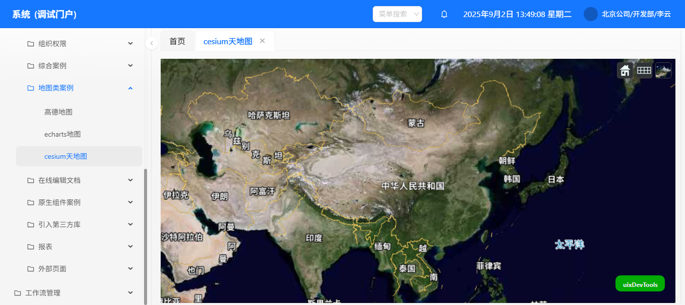 在 Cesium 中集成天地图作为底图,运行效果如下图所示