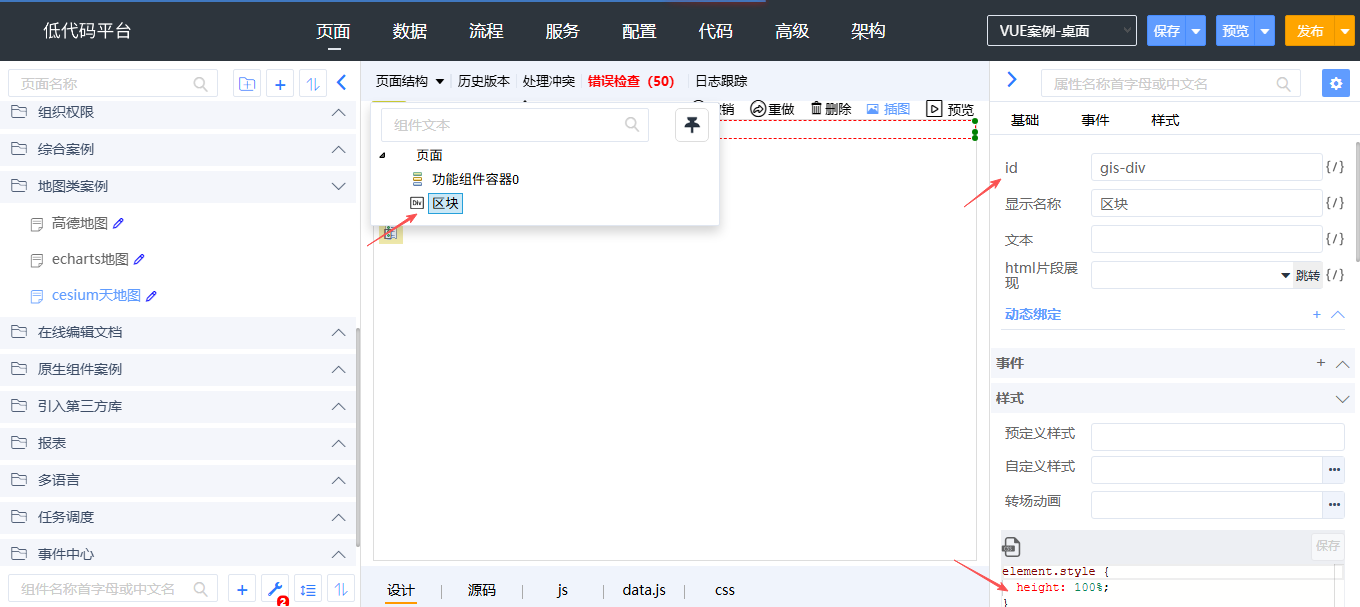 - 这一句代码 new Cesium.Viewer('gis-div', {}) 中的 gis-div 是显示地图区块组件的 id 属性的值