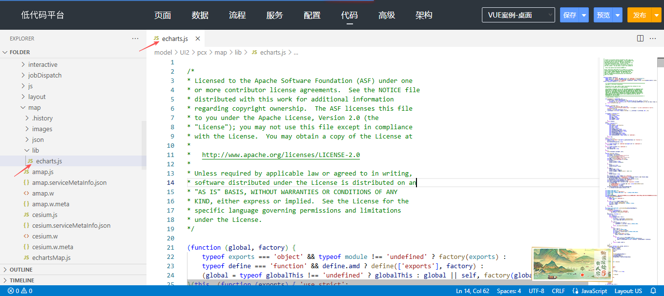 从 ECharts 官网下载 echarts.js 文件,上传到 model/UI2/pcx 目录的任意目录下,如下图所示