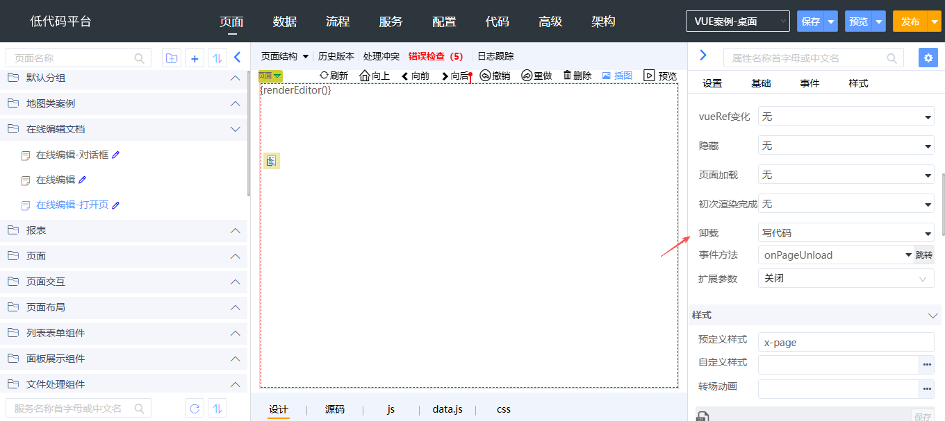 关闭页面时,触发页面组件的卸载事件,如下图所示