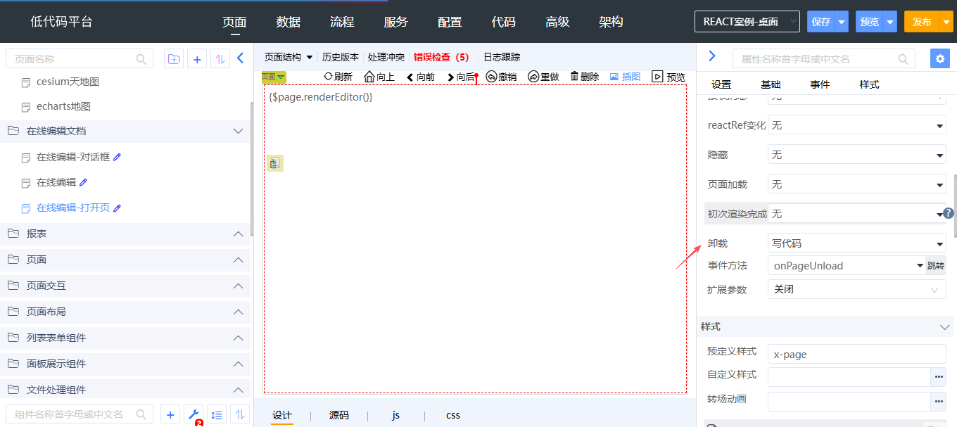 如果系统组件使用的是 vue 组件,参考前面“使用 vue 组件”一节中的关闭页面 如果系统组件使用的是 react 组件,参考前面“使用 react 组件”一节中的关闭页面
