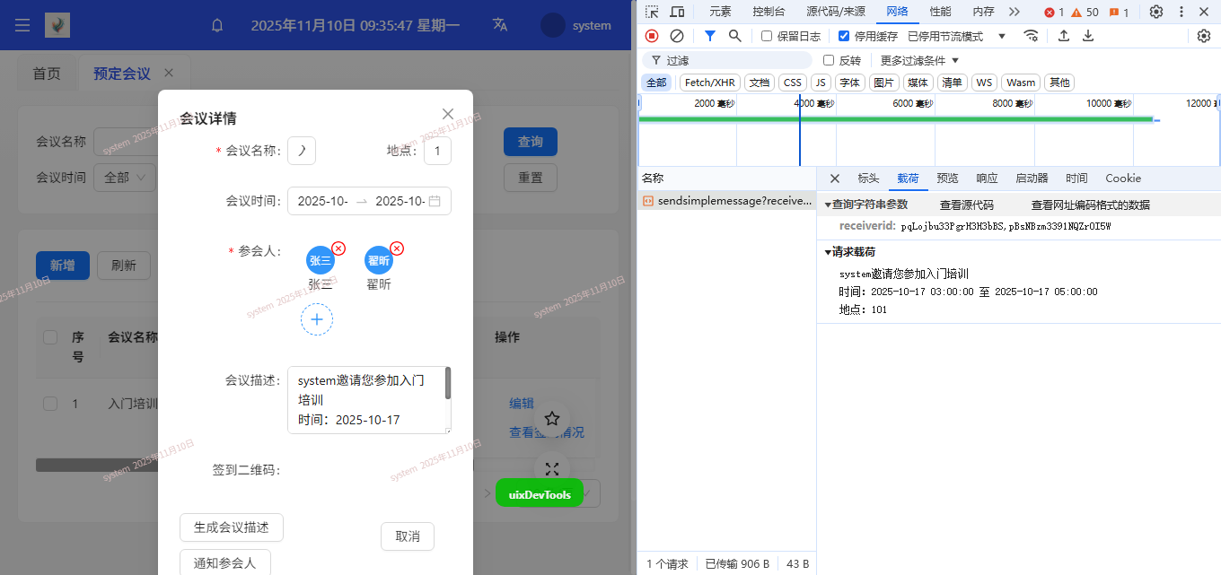 发送消息(简洁)API 用于在设计器中使用。使用前需要通过“高级-租户内跨应用调服务、数据”将 API 添加到 IDE 的服务组件面板中。