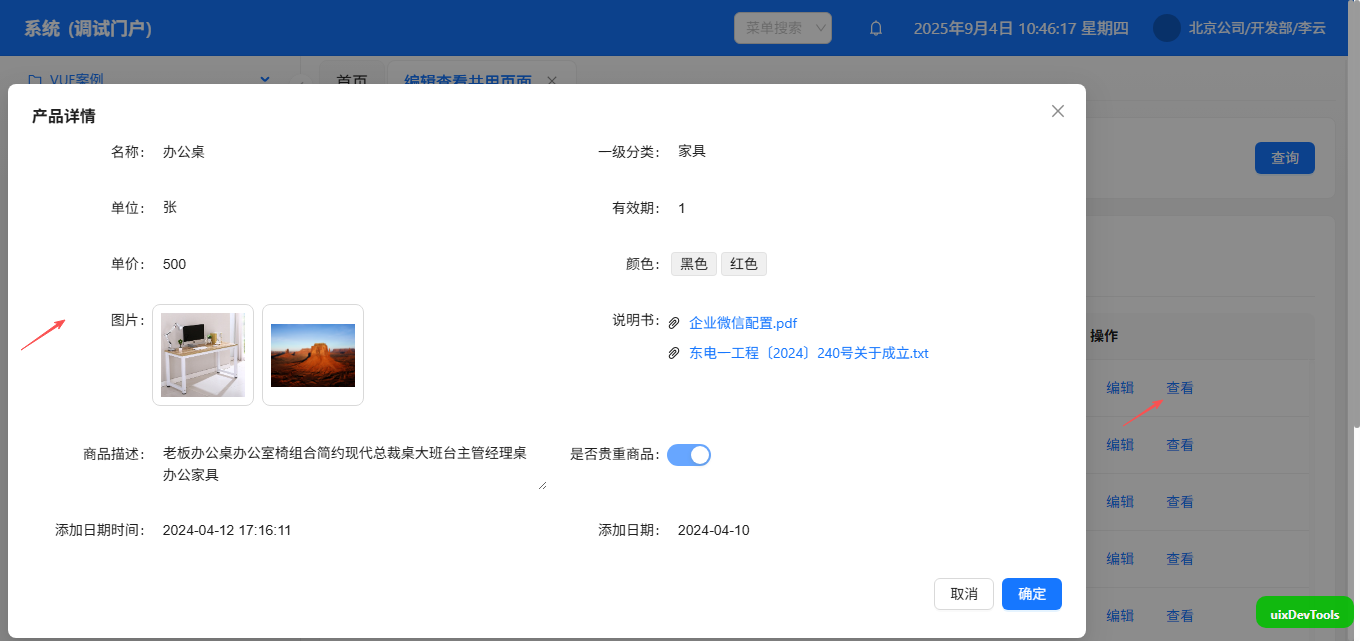 设置完毕,当再次点击查看按钮打开详情页面时,组件会使用系统提供的禁用样式展现
