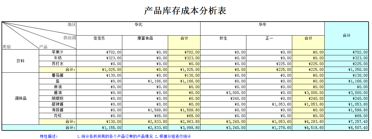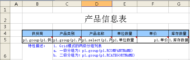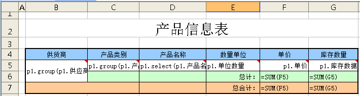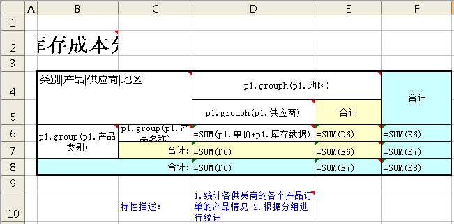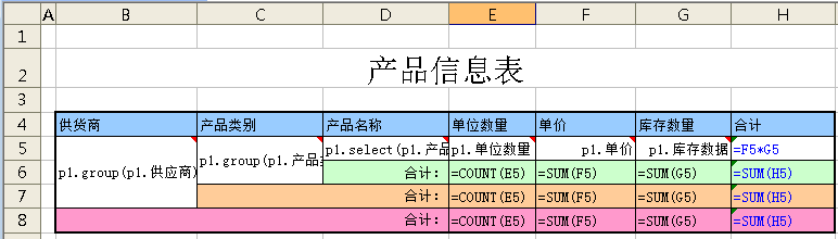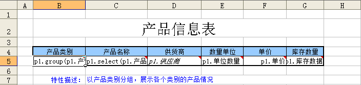 # 在B5中,输入p1.group(p1.产品名称),表示纵向以产品名称进行分组。