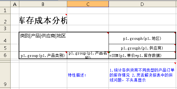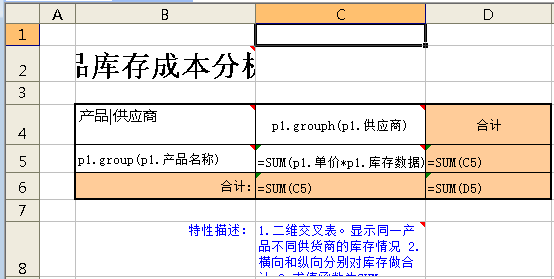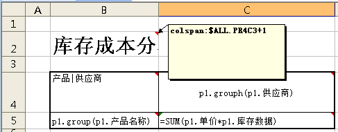 # 在C5中,输入=SUM(p1.单价*p1.库存数据),表示该单元格的值为对应的单价x库存数量。