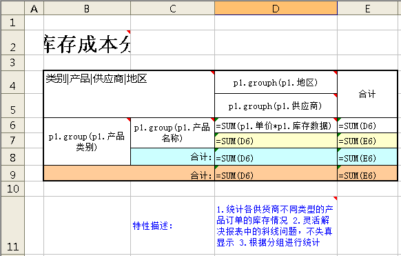 # 在D6中,输入=SUM(p1.单价*p1.库存数据),表示该单元格的值为对应的单价x库存数量。