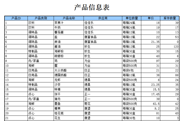 # 在B5中,输入表达式p1.select(p1.产品ID),表示引用产品ID的全部数据。