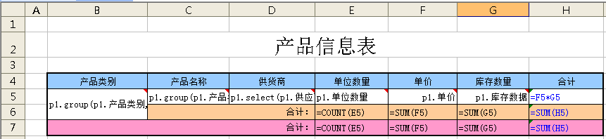 # 同理,在G6、G7中输入的表达式=SUM(G5),表示计算每个分组中库存数量的合计。