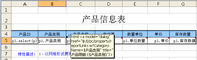 # 在B5中,插入批注:href="$UI/pc/property/reportLinks.w?Category-Name=$RCATEGORYNAME" title="产品明细-{$RCATEGORYNAME}"/
