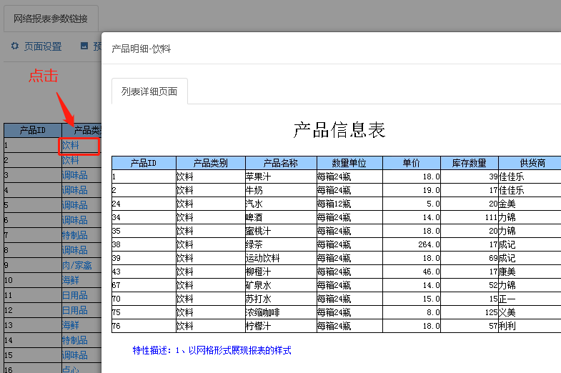 # 表示弹出标题为产品明细-{$RPRODUCTNAME}的对话框(model=’dialog’),并传入参数Category-Name。