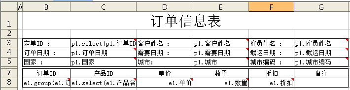 # 在B8中,输入e1.group(e1.订单ID,'e1.订单ID=p1.订单ID'),表示引用e1数据集的数据并根据订单ID进行分组。使用自身的订单ID作为外键关联主表。