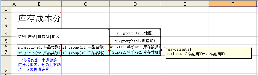 # 在D7中,添加批注main-dataset:s1,conditionv:s2.供应商ID=s1.供应商ID,表示s2以s1数据集为主表,通过供应商ID相关联。