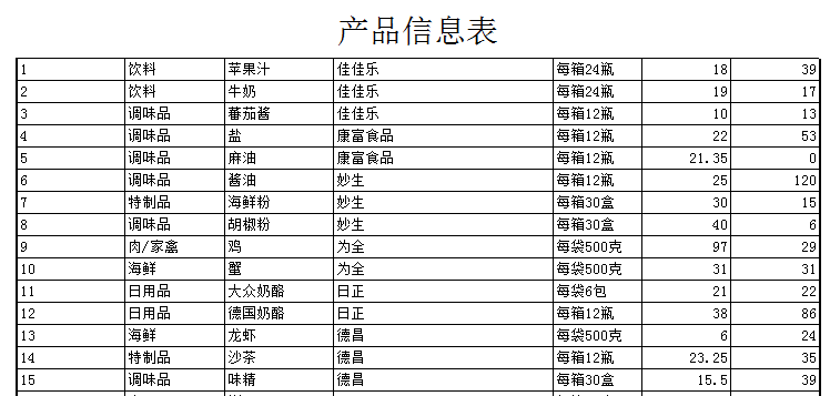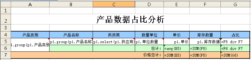 # 在C5中,输入表达式p1.产品类别,其他单元格输入的表达式与C5类似。