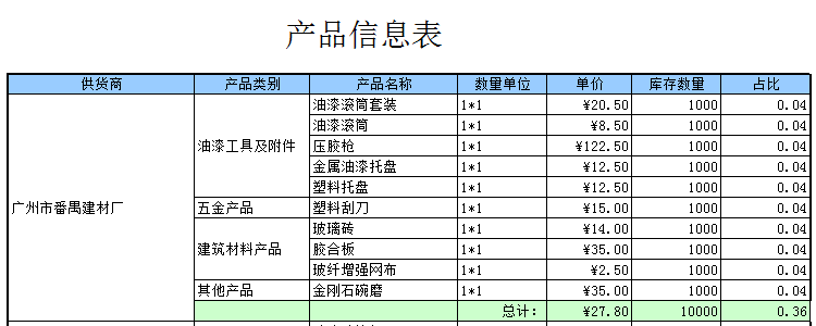 # 在C6中,输入=SUM(C5),表示计算每个供应商所有产品名称的采购成本(单价x库存数量)合计。