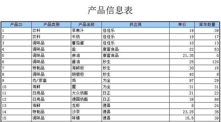 表示按照字段单价升序排序,字段类型为number型。也可以写成p1.select(p1.产品名称,'','field:单价')。