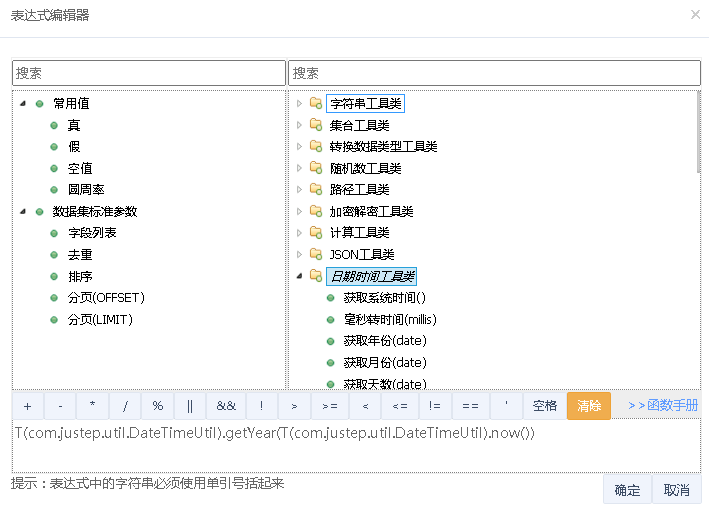 | 默认值 | 前端未传入,且没有设置计算表达式时使用 只能依赖数据集标准参数,不能依赖别的参数 |
