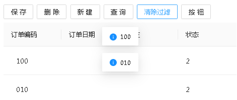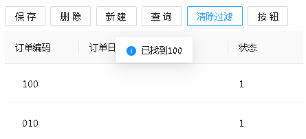 在数据集组件的数据中查找订单编号orderNo等于100的数据