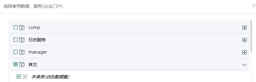 系统支持在同一租户内调用其他应用的服务和数据,在当前应用中配置使用租户内其他应用的数据集,如下图所示: