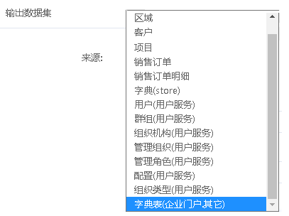 在export.json文件中声明的数据集,就可以在其他模块中访问了。如下图所示,关联配置中可以选择到其他模块的数据集。