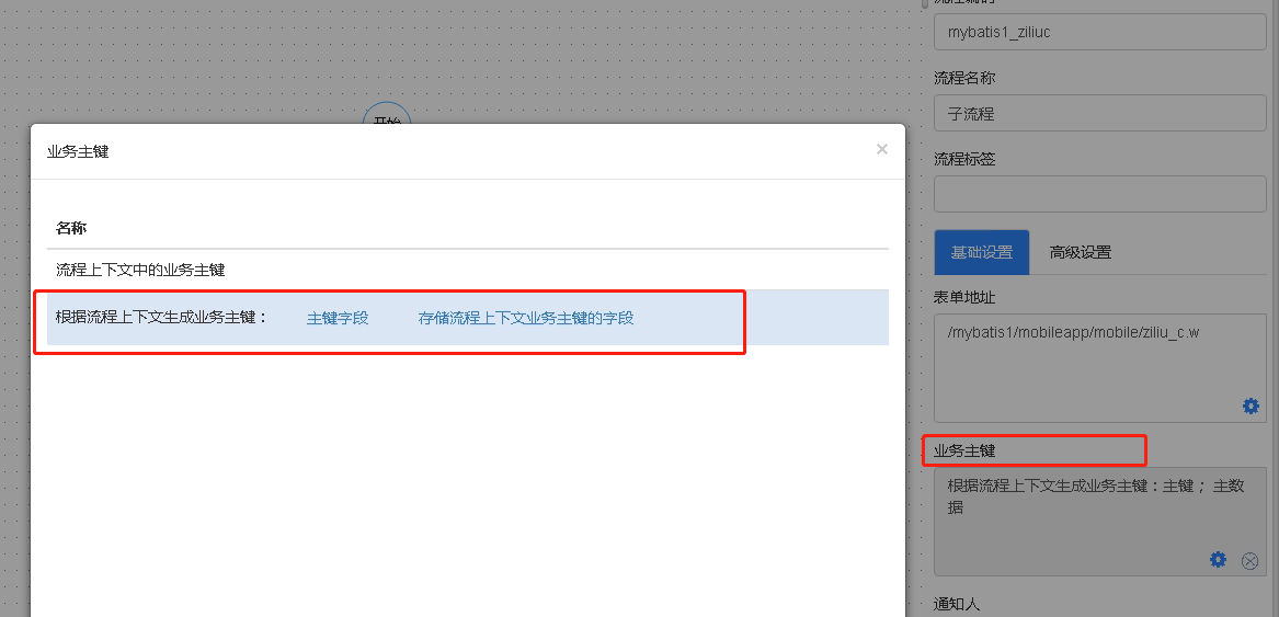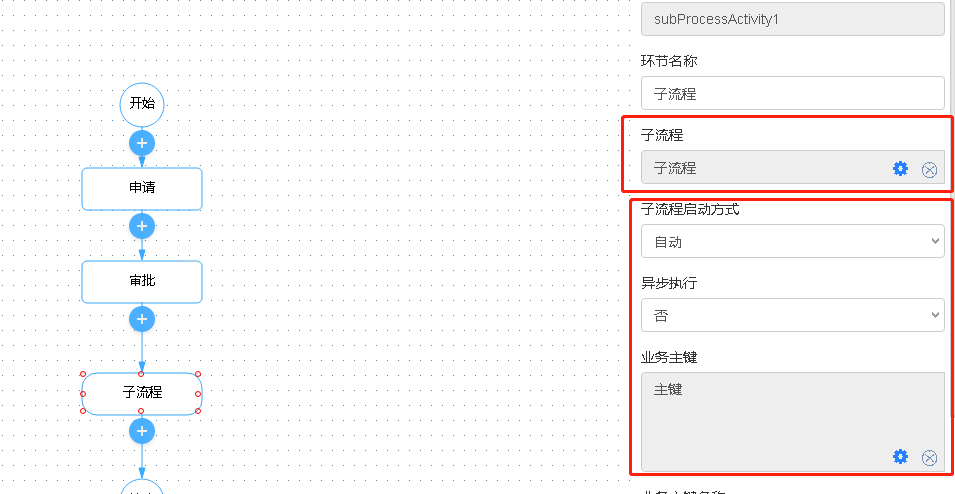 在子流程上需要设置业务主键,选择根据流程上下生成业务主键