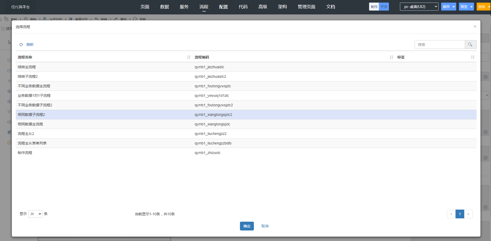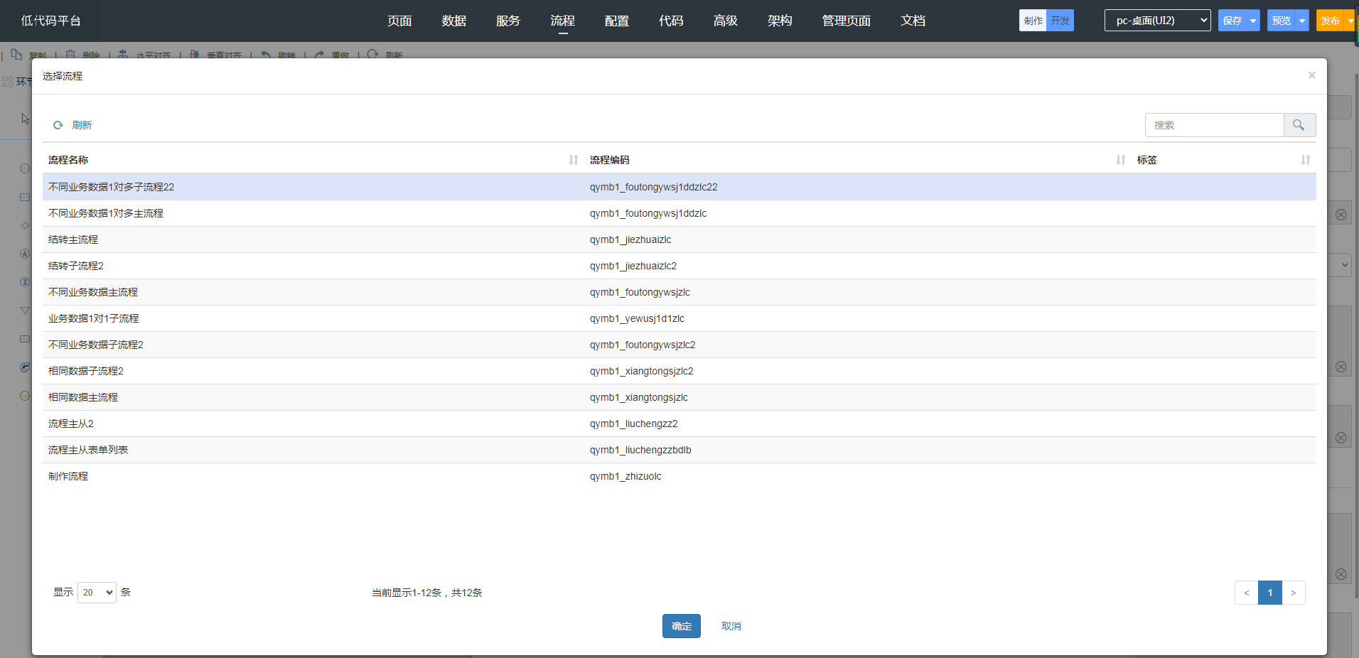 4. 点击⚙打开流程列表并选择对应流程添加为子流程;
