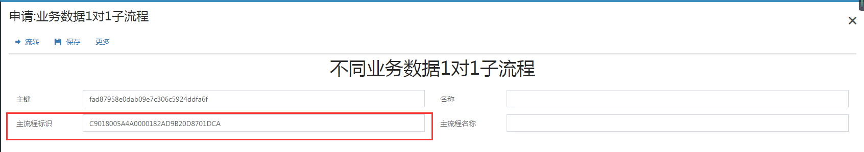 主流程是关联一个业务数据,子流程关联另一个业务数据,两个业务数据是一对一的关系;