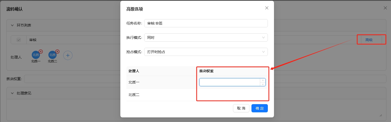 一个环节多人处理的表决权重
