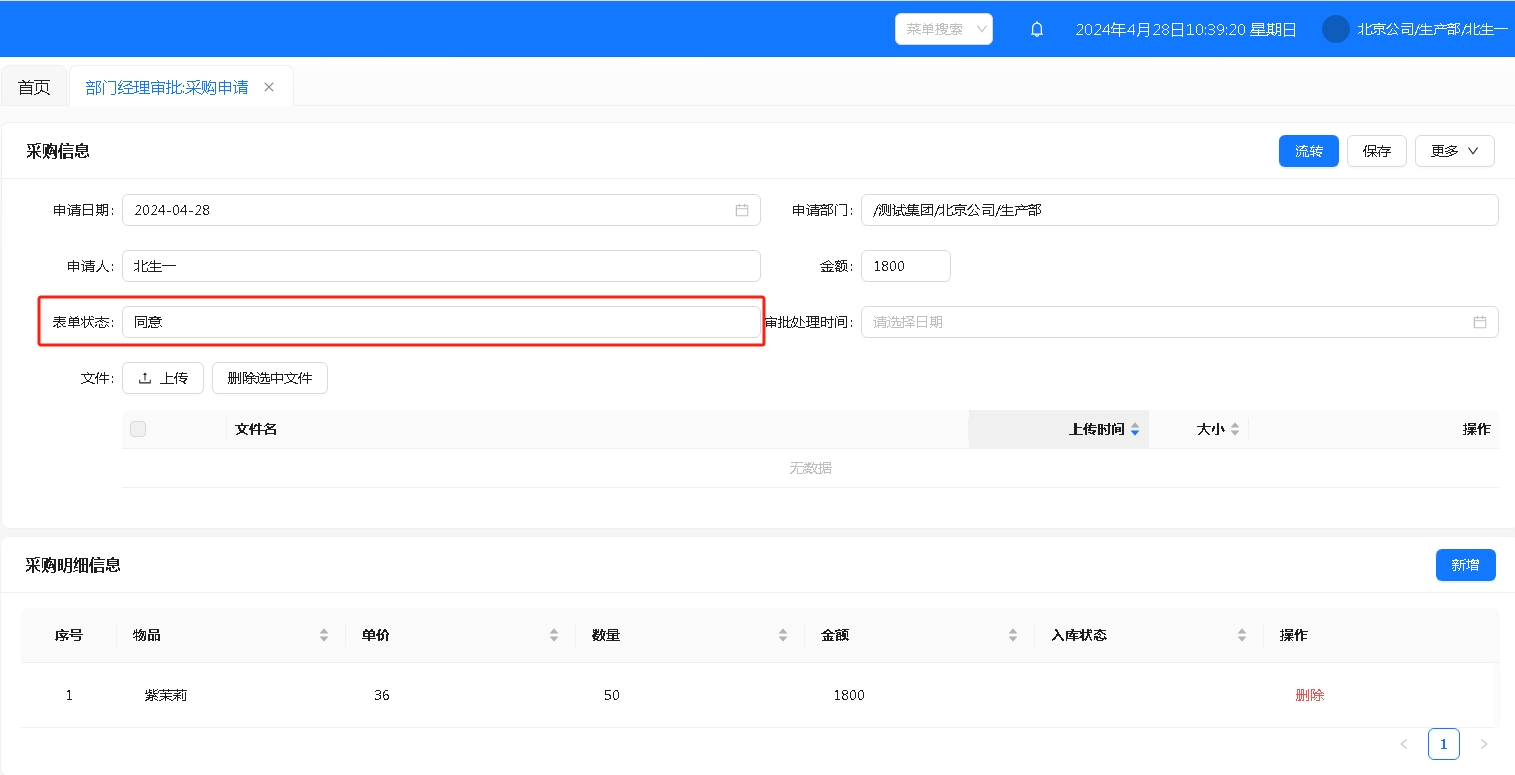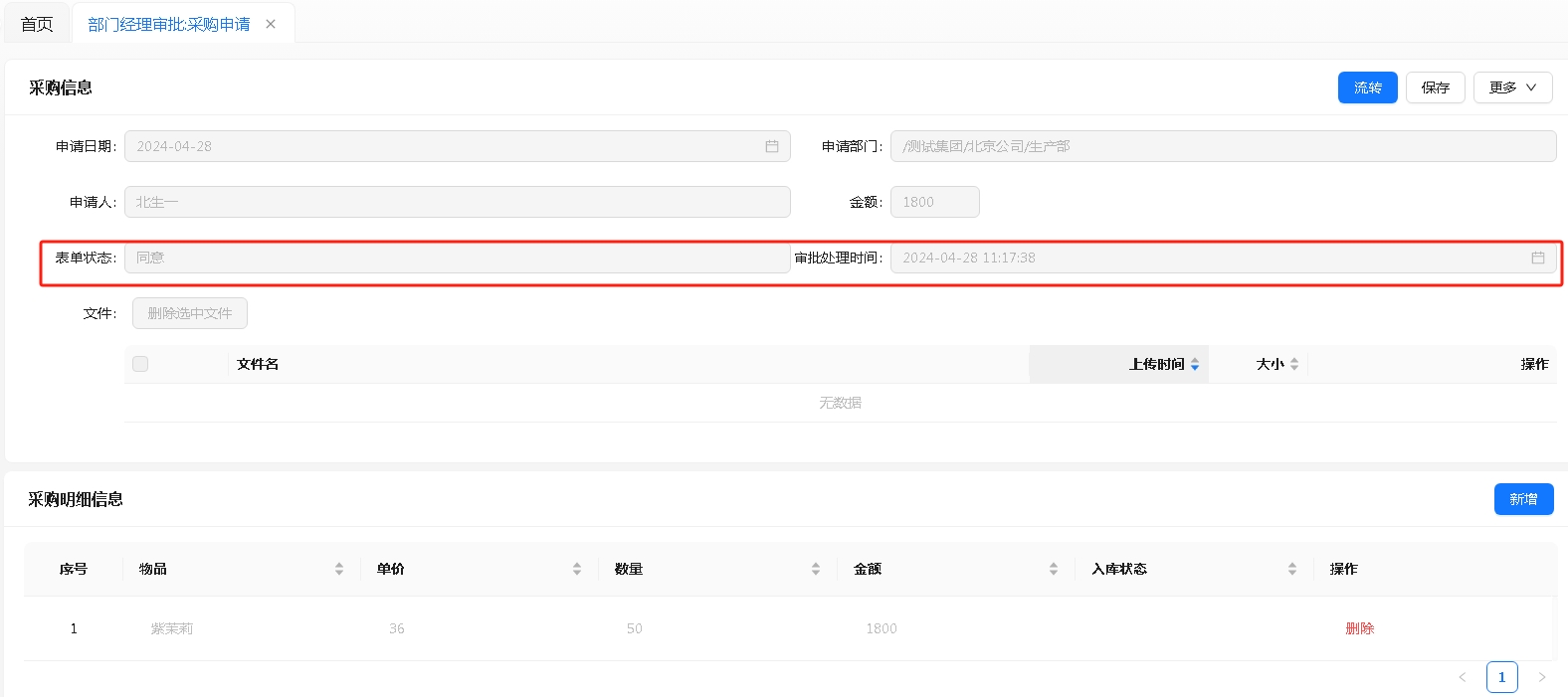 - 在已办任务中,打开可查看批量勾选处理的审批单及数据回写内容