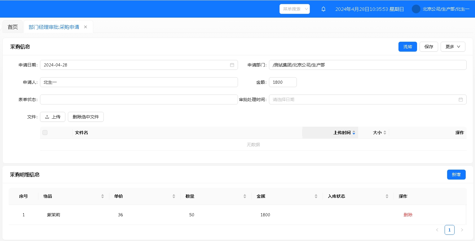 - 用平台提供的流程相关的页面模版生成的流程表单页面中在更多中默认就有批量流转;不是通过流程相关的页面模版创建的可以自行添加,打开引入了工作流组件的流程页面,添加批量流转操作按钮