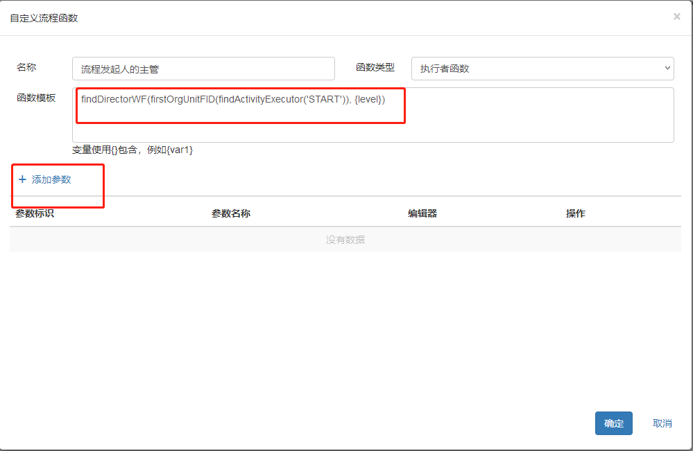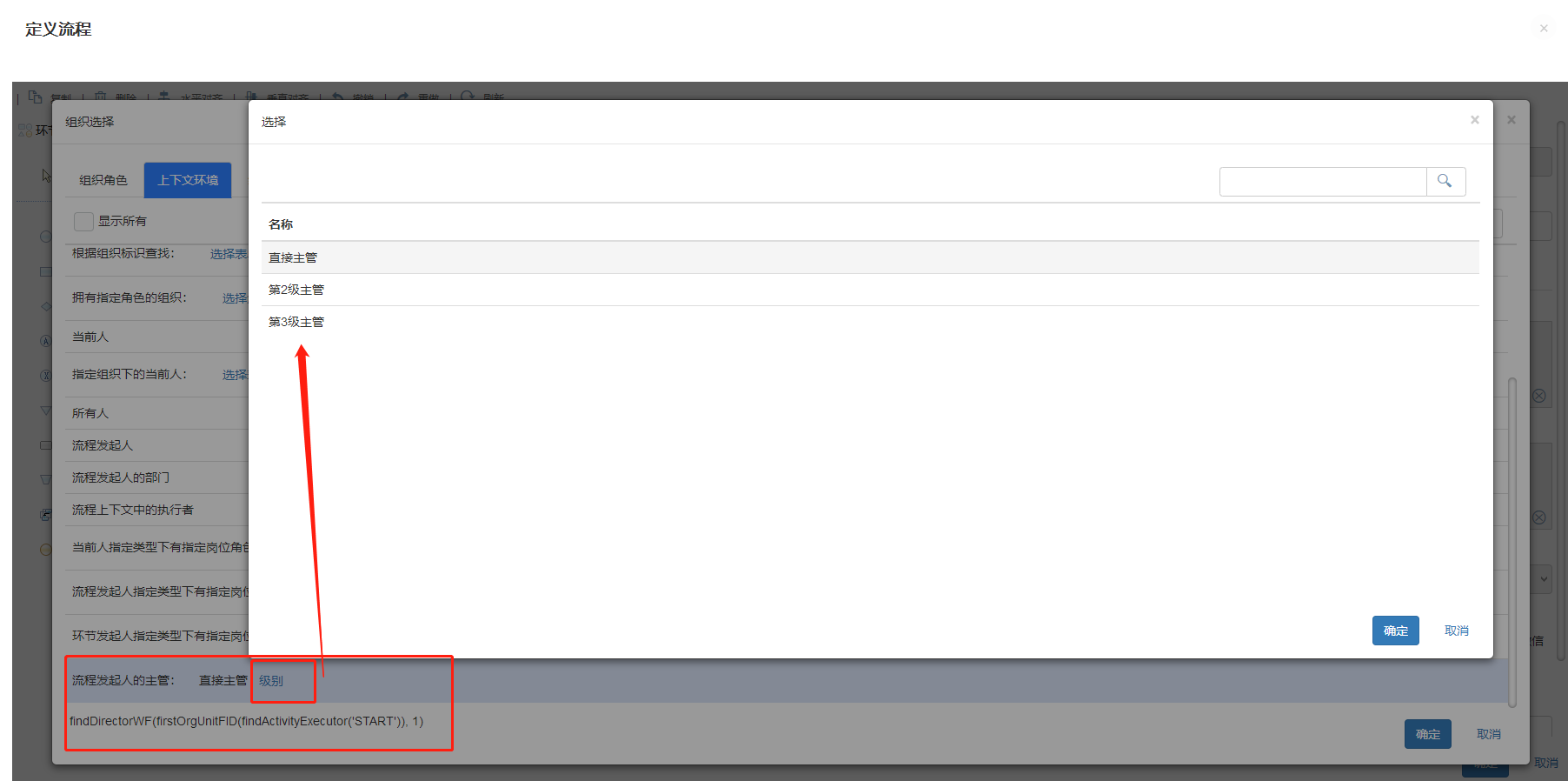 函数模版:findDirectorWF(firstOrgUnitFID(findActivityExecutor('START')), {level})