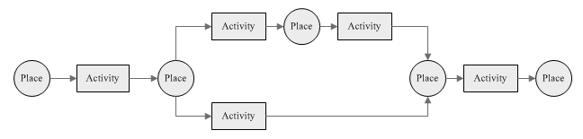Activity和Activity不能直接互连接的,只能通过Place互连。如图所示。