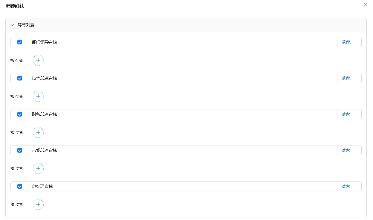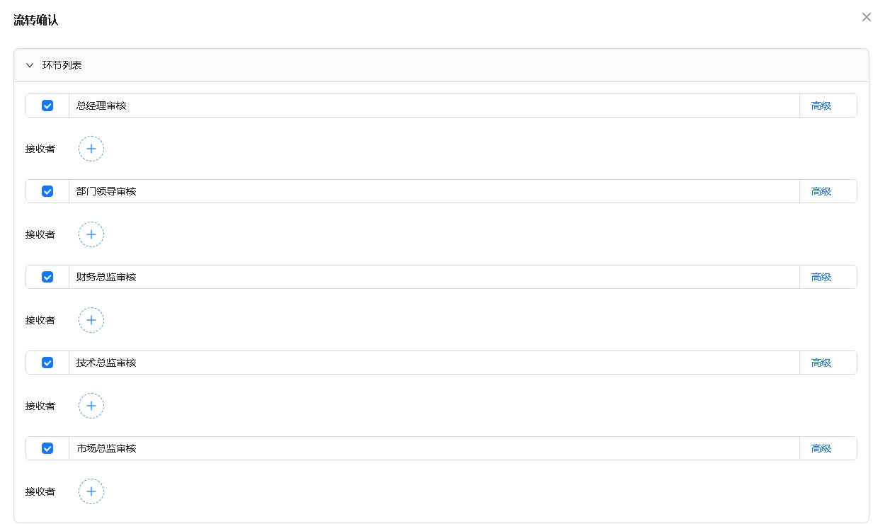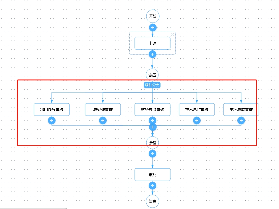 运行时默认显示的顺序如下图,要调整为部门领导审核在第一个、技术总监审核在第二个、总经理审核在最后
