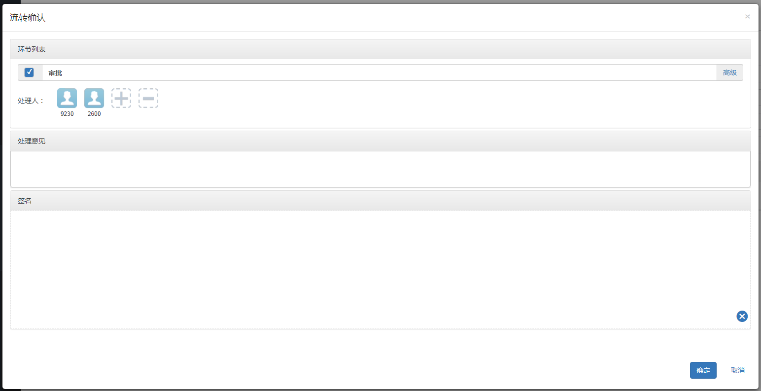 - 点击“流转”按钮,选择流程下一环节处理人,即可将任务发送到对应处理人的待办任务列表中