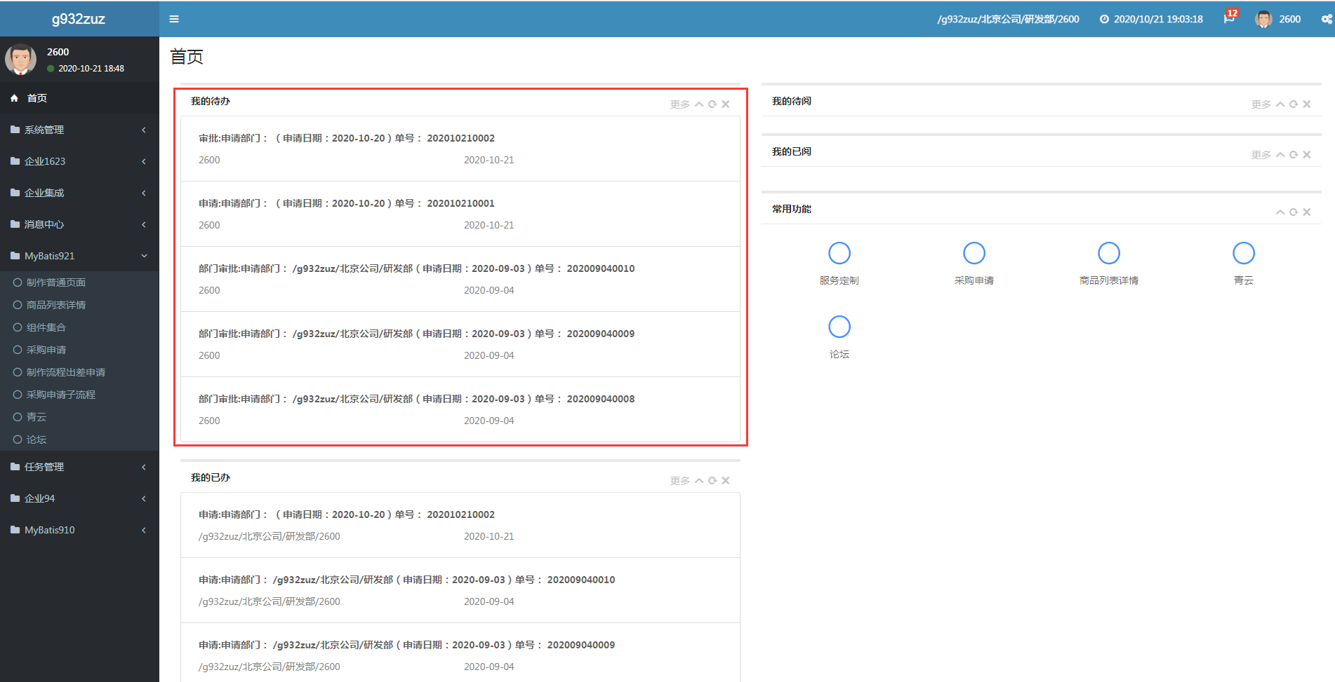 业务流程功能开发完成后,即可发起业务流程进行任务流转处理操作