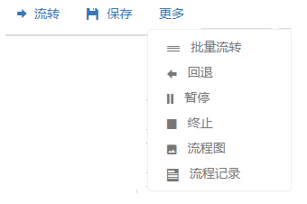收到待办流程后,处理人需要处理这些任务,流转、提交这些动作是必需要做的操作,除此之外我们根据需要可以退回、转发、终止、查看流程轨迹图、流程处理记录等操作