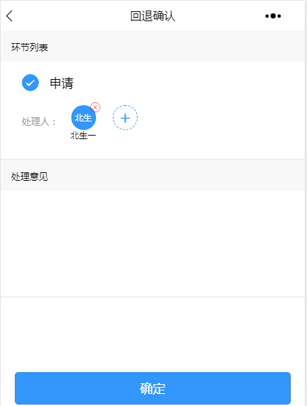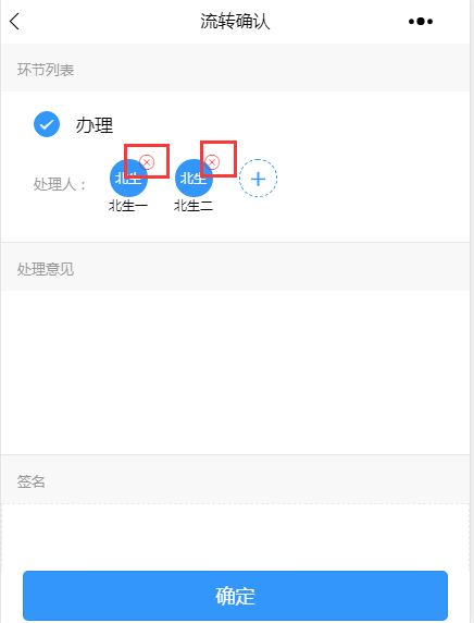 - 取消处理人:取消环节处理人,在已选人员列表上点击x删除