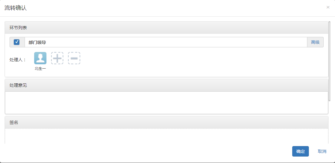 - 同意:将任务流转至下一处理环节,打开流转确认界面