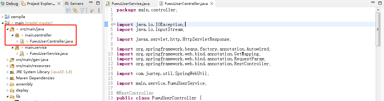 在src/main/java/main目录下增加controller目录,在该目录下增加controller文件