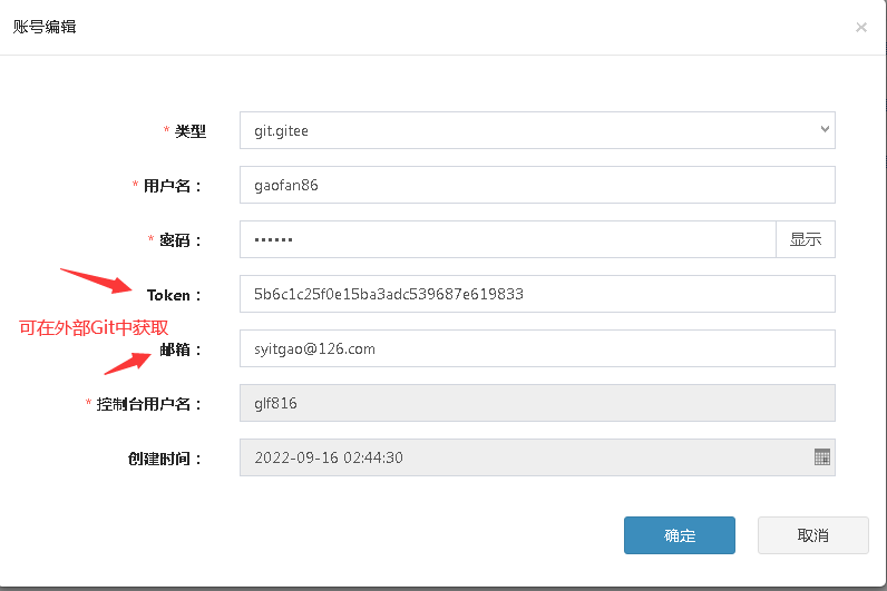 - 平台应用开发者配置Git账号,Git账号的用户名、密码、token、邮箱等在外部Git里配置及获取即可,同一个开发者可以配置多个外部Git账号