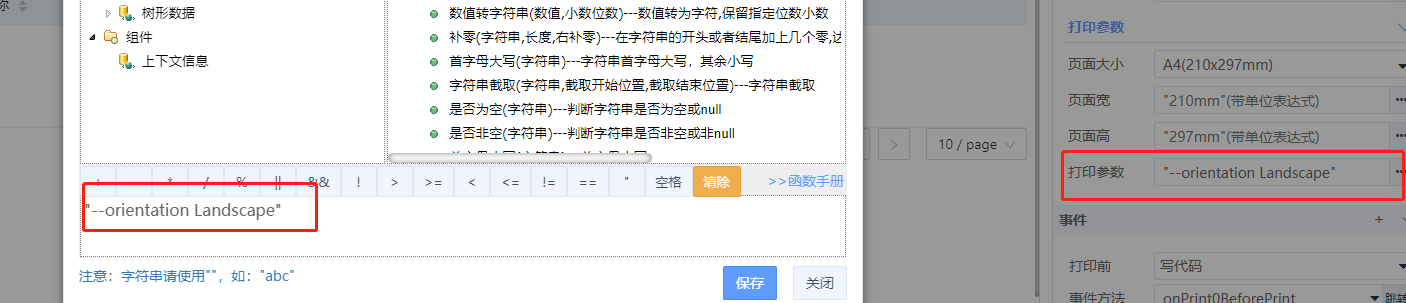 打印时如果默认要横向打印可以在打印参数中设置--orientation Landscape,注意是字符的方式添加,如下: