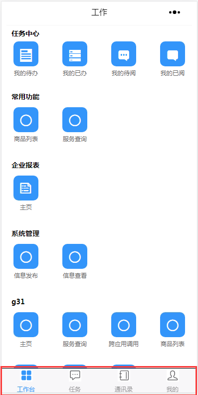 需要增加参数type=tab&$pparams=tab,如:/mybtisg35/mobileapp/mobile/fuwu_dy.w?type=tab&$pparams=tab - 显示顺序:设置底部导航栏显示顺序,从1开始
