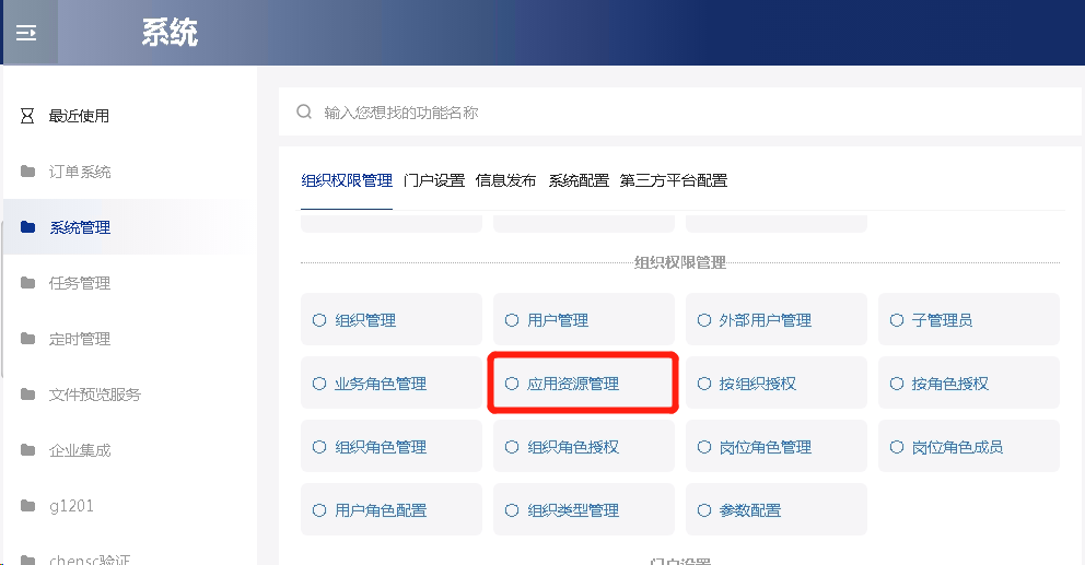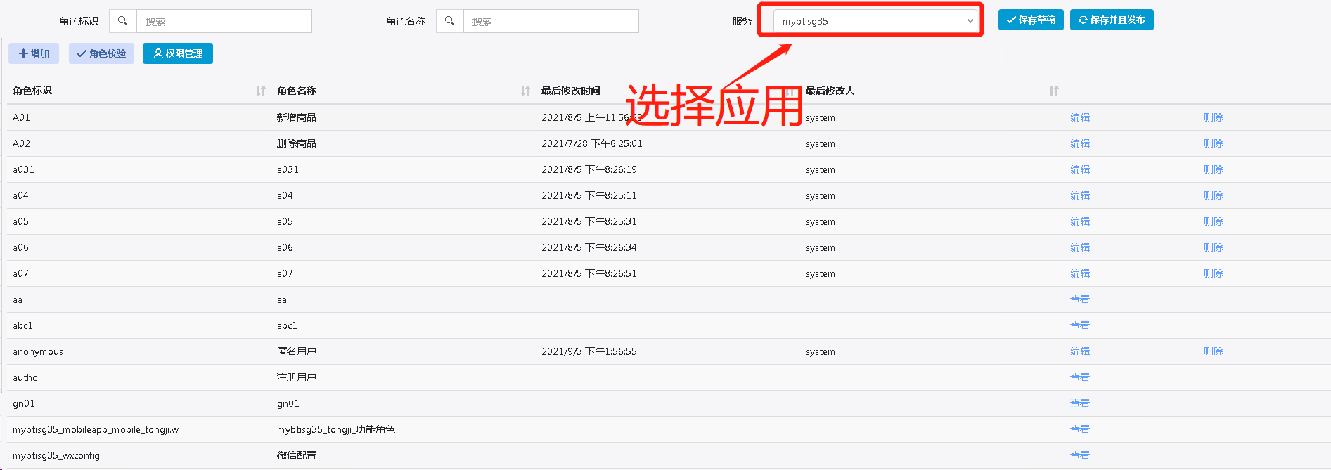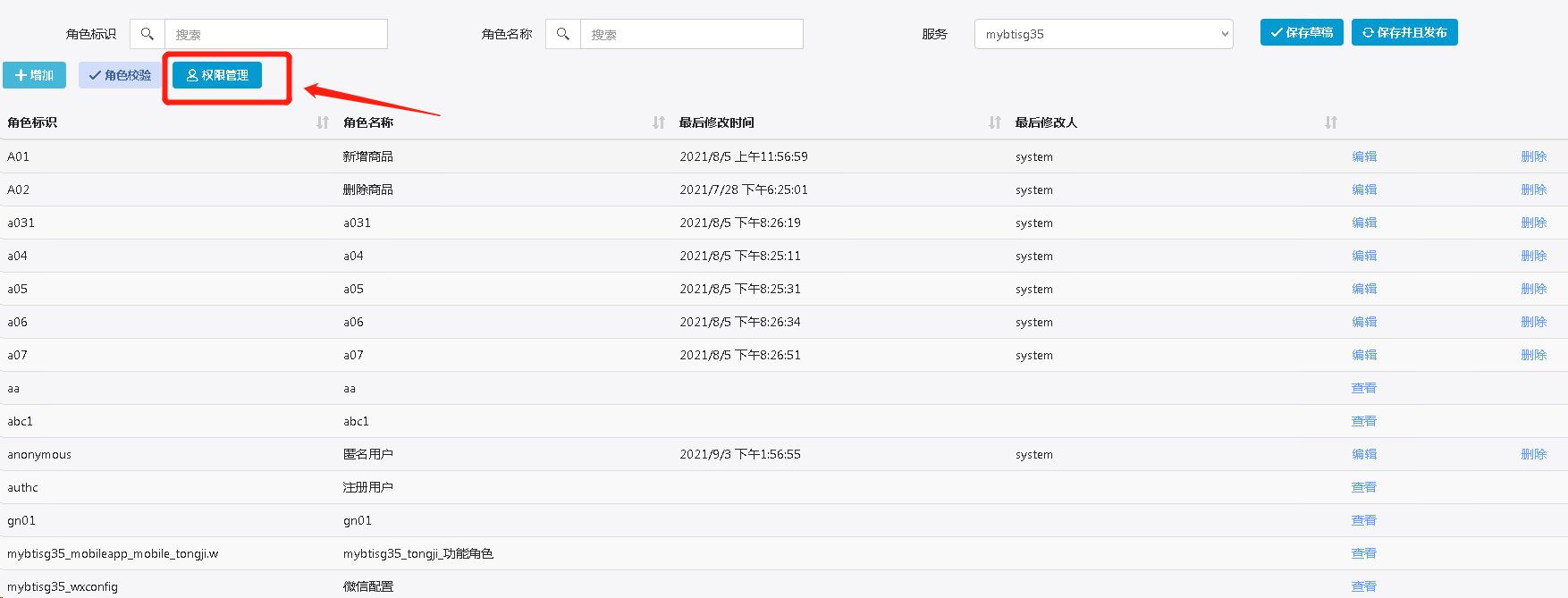 - 通过提供的服务权限配置功能中进行自定义菜单设置