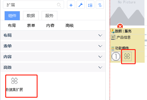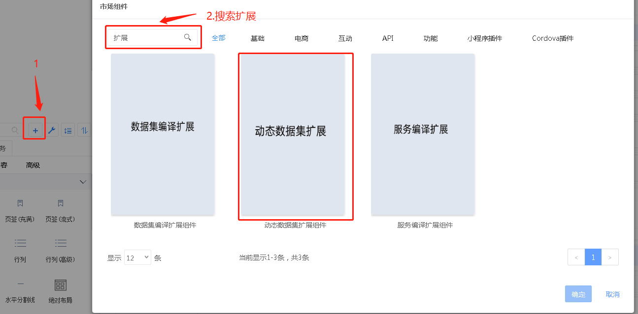 使用动态数据集扩展组件,从市场中下载动态数据集扩展组件,创建动态数据集时选择对应的模块