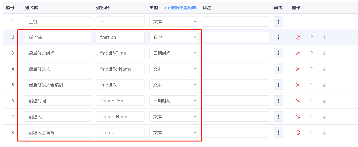 动态数据集中添加固定的字段,如创建人、修改人、创建时间、修改时间等