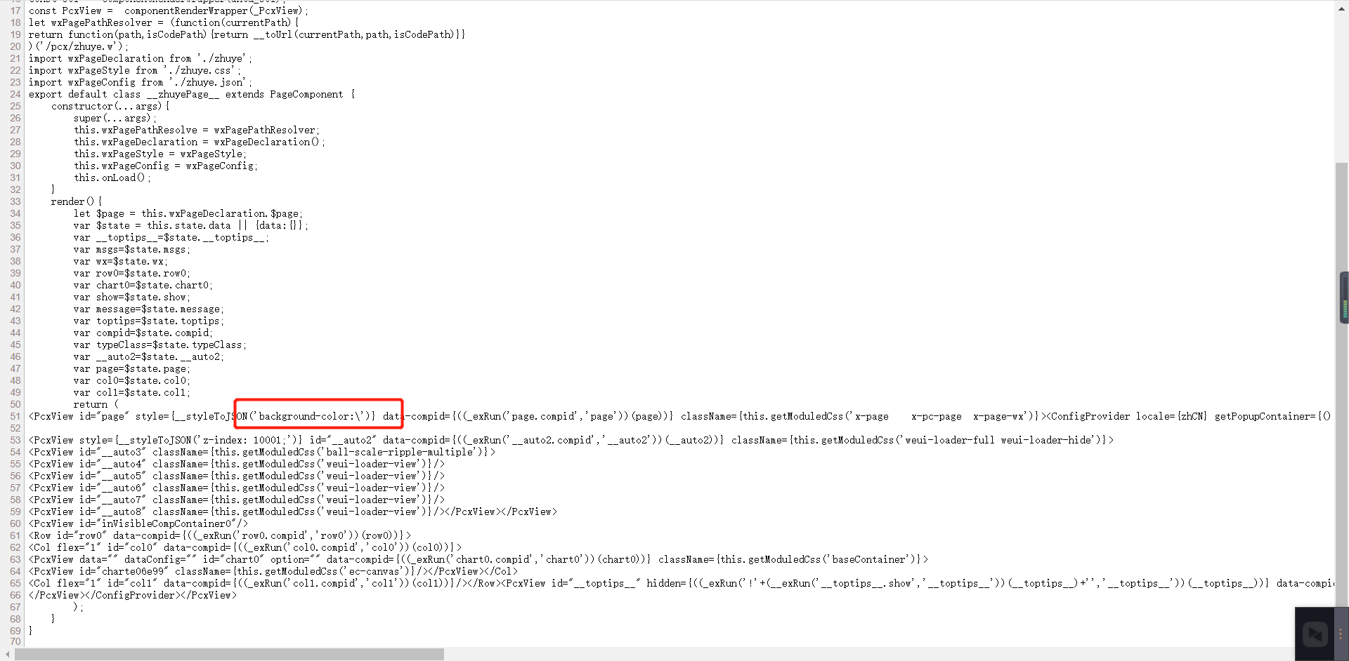 这样就能看到xxx.component.js文件的内容了,找到错误中提示的行列,如果不能看出问题,可以往前面再看看。