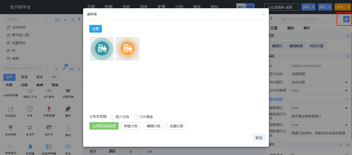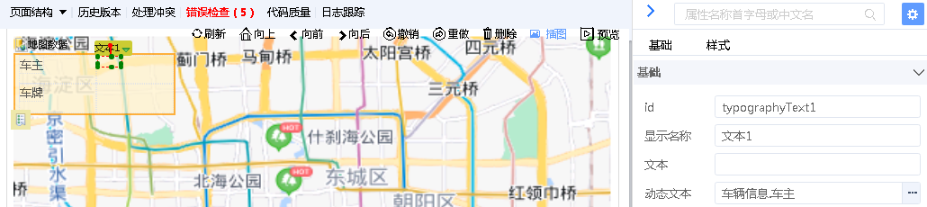 下载的百度地图组件在高级页签中,将百度地图组件添加到页面上。地图组件自带一个数据集——地图数据,将标记点信息写入这个地图数据,地图上就能显示出这些标记点