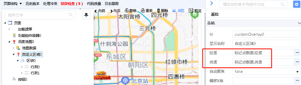 给自定义区域设置经纬和纬度,分别指向标记点数据的经度和纬度