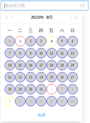 在渲染函数中判断根据不同的date值返回不同的样式展现