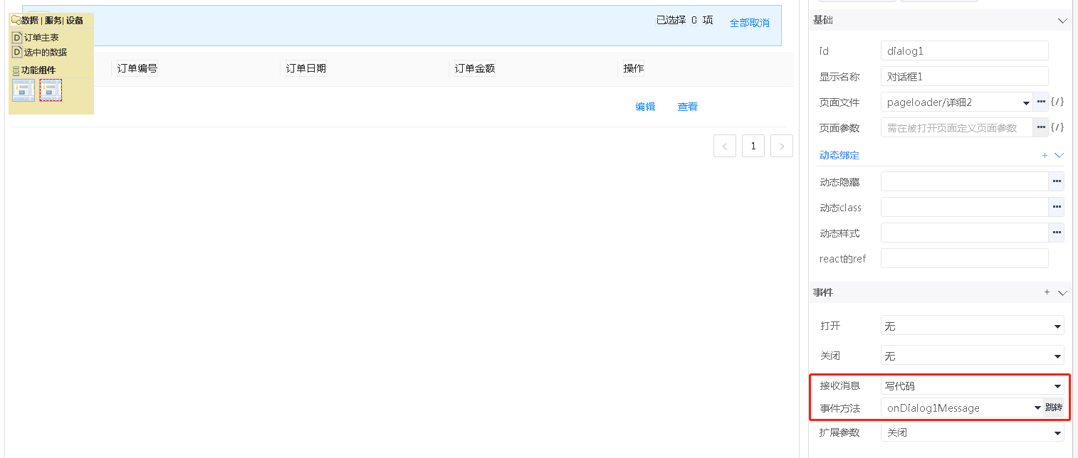 页面加载组件收到action=edit时,会设置数据集的主键=id的过滤条件,并执行刷新数据。