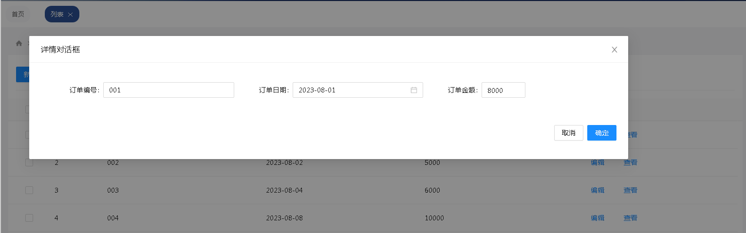 从列表打开表单对话框,实现新增、编辑和查看数据的功能